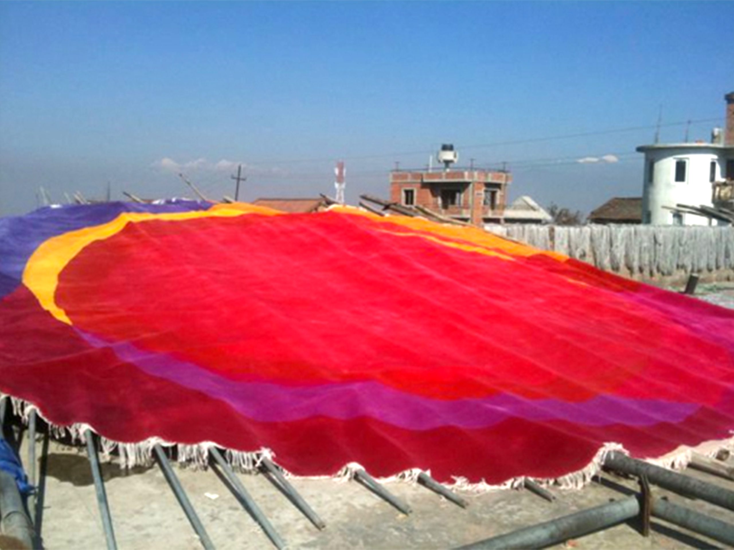After the weaving was completed the Deep Sunset rug was washed in Himalayan rainwater and