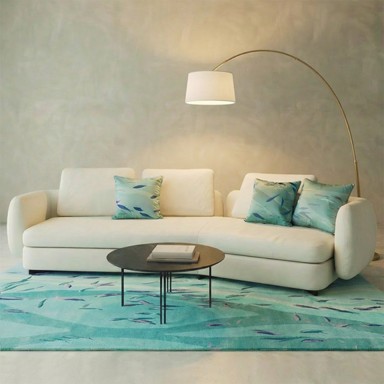 This set of 3 beautiful soft velvet cushions complimenting our Fishes in Greece Light Rug and Runner, are made to order and available as covers only, ready for your own inner pads, or with beautifully soft removable down feather inner pads included.