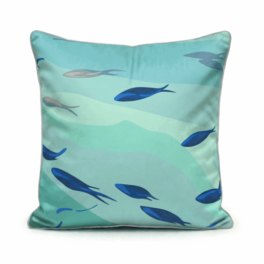 The set of 3 beautifully soft and huggable Fishes in Greece Light cushions, designed to bring the calmness and tranquility of the Greek ocean to any living room or bedroom.