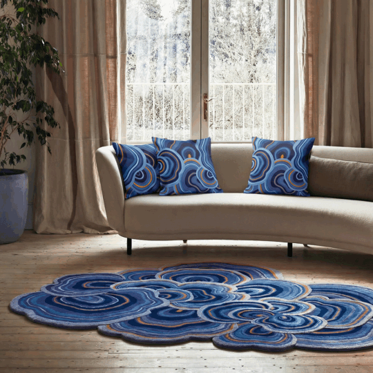 This set of 3 beautiful soft velvet cushions complimenting our Lichen Blue Orange Rug, are made to order and available as covers only, ready for your own inner pads, or with beautifully soft removable down feather inner pads included. Choose from 40 x 40 cm standard size cushions or 60 x 60 cm for extra cosy comfort, perfect for large sofas and as decorative throw pillows for beds.