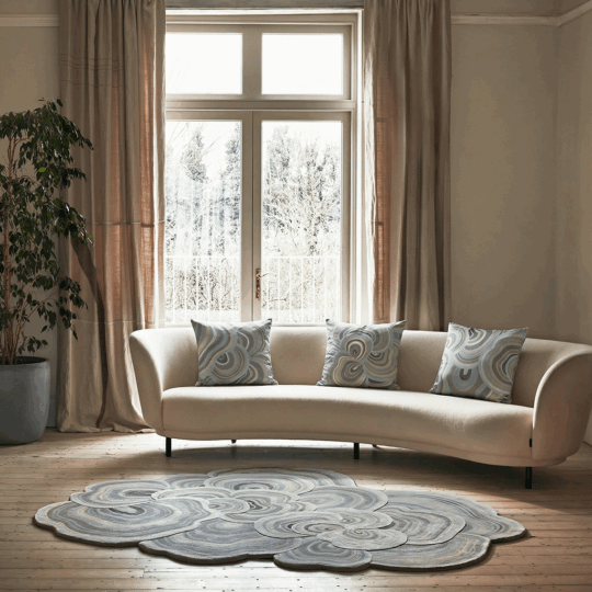 The set of 3 beautifully soft and stylish Lichen Greige cushions, inspired by the natural curves and colours of lichens.