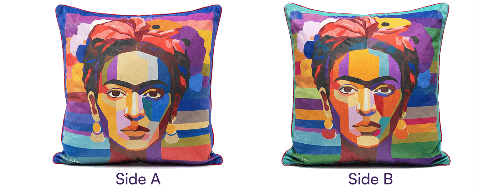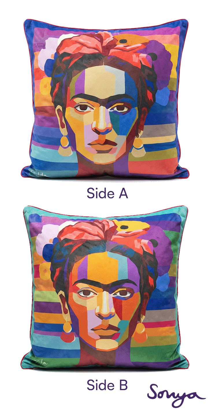 Sonya Winner cushion covers are made in a luxury soft velvet polyester, which is a dream to stroke (we can’t stop stroking them ourselves!). This fabric is much better than cotton to reproduce our distinctive vibrant colours, and more hard-wearing and easy to clean, highly suitable for everyday use.