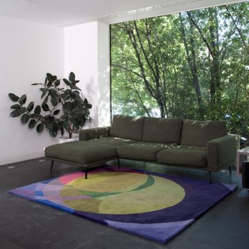 There are thirty nine carefully combined individual hues woven into the rug, which create the effect of dynamic transparency, luminosity and light.
