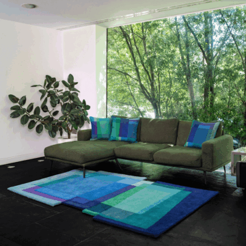 After Albers Cornflower is a geometric blue rug with a highly contemporary feel. The abstract and highly imaginative design of the rug plays with planes of bold colour overlapping and blending to create a complex, yet harmonious mix of hues.