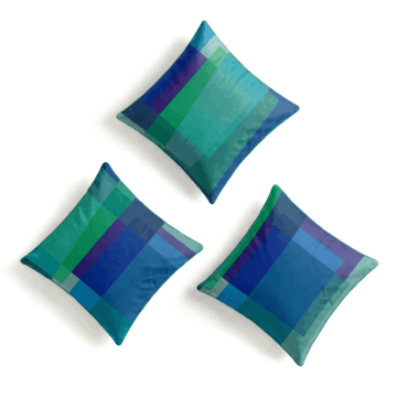 After Albers blue rug has been expertly crafted out of a series of dynamically arranged rectangular shapes. In the “Cornflower” version of the design Sonya uses her knowledge of colour to layer cornflower blues, deep purples and rich greens that interact with one another to create new hues with a sense of depth and tranquility. The colour layering is further emphasised by varying pile heights and hand carving of the rug which give the piece a sculptural quality.
